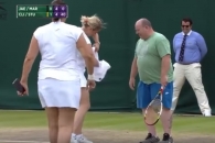 Невзирая на теоретическую подкованность, Крис дважды неудачно принял подачу Клийстерс, после чего прекратил поединок и сфотографировался с теннисистками.