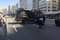 Рядом с трибуной для прессы работают саперы.