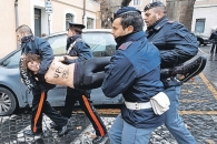 Акция в стиле топлес была устроена в знак протеста против позиции церкви по вопросам абортов и гражданских браков. Продлилась она очень недолго, подоспевшие жандармы с обнаженными девушками особо не церемонились