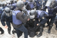 Полиция задержала почти сорок участников конфликта, у которых изъяты два устройства для отстрела резиновых пуль, две телескопические дубинки, граната, несколько ножей, газовые баллончики и дымовые шашки.