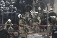 Конфликт начался с того, что активисты подожгли шины, а полицейские попытались потушить огонь. В результате произошла потасовка.