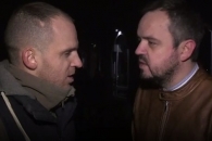 Ведущий телеканала NewsOne Василий Голованов жестко поспорил с активистами, которые заблокировали вход на канал. Активисты продолжали называть свою акцию символической и отрицали, что это давление на деятельность журналистов.