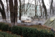 В Мариинском парке возле Верховной Рады сгорела палатка протестующих.