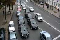 Движение транспорта возле парламента пока относительно свободное, но проехать можно только по одной полосе.