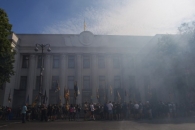 Сегодня в правительственном квартале Киева снова небо затянуто густым едким дымом. Возле здания Рады несколько сотен человек проводят митинг, требуют отмены депутатской неприкосновенности. Люди стучат в барабаны, жгут файеры, бросают дымовые шашки и размахивают красно-черными знаменами. Активисты перекрыли выходы из здания парламента и боковой выезд для нардепов. К Раде подтянуты дополнительные силы Нацгвардии и полиции.