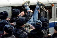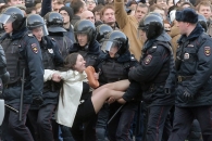 Взявшись за руки, правоохранители рассекают толпу на части и самых активных загружают в автозаки. Люди скандируют: «Позор», «Россия без Путина», «Импичмент», «Правительство в отставку», «Путин вор», «Свободу Навальному».