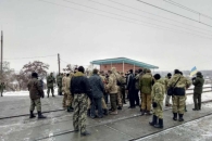 Как сообщили в полиции, около сотни человек остановили тепловоз и с помощью машин полностью перекрыли движение на крупном железнодорожном переезде. Участники акции, представившиеся ветеранами АТО, пропускают только электрички местного формирования с людьми.
