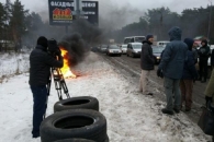 Участники массовой акции продолжать частично блокировать въезды в Киев ориентировочно до 21:00 вторника, 24 января, сообщил Укравтодор.