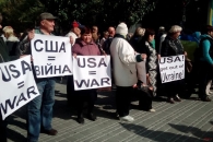 В Киеве под посольством США (ул. Сикорского, 4) проходит митинг. Несколько десятков человек держат украинские флаги, а также плакаты с надписями «США – империя зла», «США розриває Україну», «Мы – за единую Украину», «США – вон из Украины».