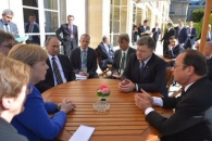 Президент Украины Петр Порошенко до начала переговоров в "Нормандском формате" в Париже провел встречу с главой Франции Франсуа Олландом.