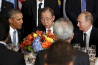 Президенты РФ и США Владимир Путин и Барак Обама пожали друг другу руки на приеме у генсека ООН Пан Ги Муна. Об этом свидетельствует видеотрансляция приема.