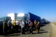 Владелец фуры рискнул провезти грузовик весом в несколько десятков тонн объездным путем вокруг блокады на дороге.