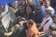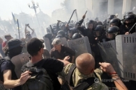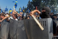 После успешного голосования депутатов за президентский законопроект у стен парламента разгорелись страсти. Митингующие принялись бросать в милицию дымовые шашки и бутылки, силовики в свою очередь оттеснили толпу в Мариинский парк
