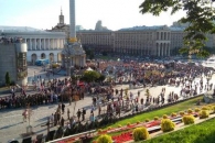 На Майдане Незалежности в Киеве играет музыка, здесь присутствуют несколько человек с повязками "Правого сектора". Основная масса людей – около 30 человек – сосредоточена около Октябрьского дворца. Возле стелы Независимости из колонок раздаются повстанческие песни.