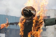 Активисты очень своеобразно сегодня вынесли предупреждение Михаилу Охендовскому. Чучело руководителя ЦИК привязали веревками и таскали по улице за лошадьми. Затем его демонстративно предали огню прямо под окнами Центринбиркома