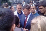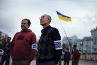 Под Администрацией президента в Киеве проходит акция против приостановления проведения АТО.
