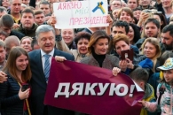 Администрации президента собрались сторонники президента Петра Порошенко, который впоследствии вышел к ним и поблагодарил за поддержку.