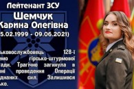 9 июня при исполнении служебных обязанностей в районе ООС погибла лейтенант Карина Шемчук из Закарпатья.