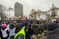 Второй день протестов предпринимателей, выступающих против введения кассовых аппаратов и карантина выходного дня начался со столкновений с полицией. Протестующие перекрыли движение по улице Грушевского в обоих направлениях.