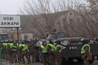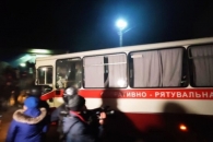 Вечером автобусы с эвакуированными украинцами в сопровождении полиции приехали в поселок Новые Санжары. Автобусы забросали камнями местные жители.