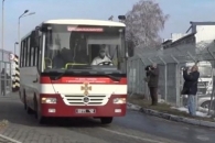 Участники акции протеста кидались камнями в сотрудников полиции и эвакуированных. В результате - разбиты окна и двери в автобусах.