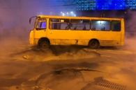 из-за прорыва трубы у Ocean Plaza в столице под асфальт провалилась маршрутка с пассажирами.