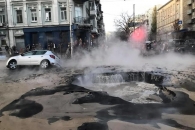 В центре Киева, на пересечении улиц Шота Руставели и Саксаганского произошел прорыв трубы с горячей водой.