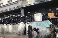 Во время массовых беспорядков под зданием Генпрокуратуры пострадали уже семь полицейских. Участники протеста попытались повредить входные двери в здание, изнутри по ним были применены огнетушители. В ответ в окна ГПУ полетели камни и брусчатка. Против протестующих также был применен слезоточивый газ