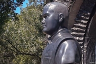 Над бюстом – большая арка с цитатой из Евангелия от Иоанна: "Нет больше той любви, как кто положит душу свою за друга своего".