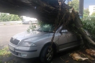 Поваленные деревья, оборванные провода, тонущие в лужах автомобили - такие предварительные результаты сильного ливня в Киеве.