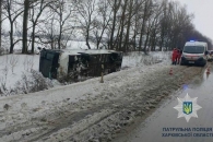 Происшествие случилось около села Чкаловское Чугуевского района. В аварии серьезно никто не пострадал, все пассажиры и водитель отделались легкими ушибами.