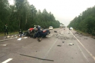 Иномарка по неизвестным причинам выехала на встречную полосу и на полной скорости врезалась в фуру с прицепом