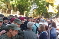 На пересечении улиц Банковой и Институтской в столице давка. Протестующие пытаются прорвать оцепление силовиков и требуют немедленной встречи с Петром Порошенко.