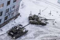 На кадрах, снятых журналистами, видно несколько танков, вокруг которых стоят военнослужащие