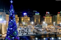 Дрон снял центральную часть Киева в новогоднюю ночь с высоты птичьего полета.