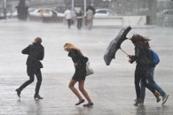 Людям советуют не ходить под большими деревьями, держаться подальше от рекламных щитов и линий электропередач