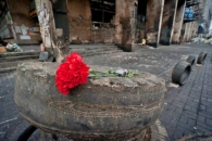 Вчера вечером автомобиль сбил памятник героям Небесной сотни, установленный в центре Киева.