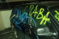 Во Львове автомобиль с белорусскими номерами, в салоне которого была георгиевская лента, разрисовали синей и желтой красками.