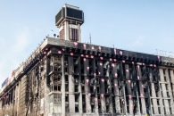 Сегодня в центре столицы коммунальщики начали сносить два последних незаконно пристроенных этажа Дома профсоюзов. Это стало причиной массовой драки между защищающими скандальное кафе "Каратель" людьми в камуфляже и правоохранителями. В ход пошли камни, стальные пруты и слезоточивый газ. Сообщается о пострадавших.