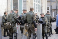 В центре Львова наблюдается скопление правоохранителей и военной техники, а на входе в помещение городского совета поставили турникеты.
