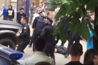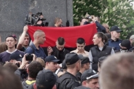 Сотрудники полиции в оттеснили от стелы с Вечным огнем в Парке славы в Киеве несколько десятков активистов, которые протестовали против использования запрещенной символики на марше "Бессмертный полк".