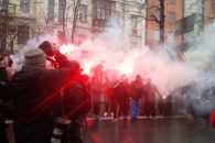 У здания суда собрались активисты, которые ранее пикетировали СБУ. Горят шины и файеры. На суде Краснов сообщил журналистам, что силовики избивали его 8 часов подряд. Причем, по его словам, это были те же бойцы, которые пытали его в Крыму во времена Януковича.