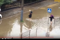 Из-за сильного ливня и потопа люди не могли самостоятельно покинуть маршрутку