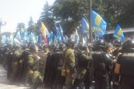 Митингующие пустили в ход дубинки, палки, камни и бутылки