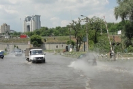 В Голосеевском районе столицы около метро Выдубичи прорвало трубу горячей воды. В результате часть дороги превратилась в горячую парящую реку