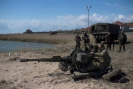 Информагентства опубликовали фото, на которых видно, как силы АТО оперативно разворачивают орудия на пляже Азовского моря у села Широкино Донецкой области