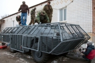 В небольшом поселке Сумской области усовершенствовали систему защиты БТР и БРДМ от снарядов. Первые модернизированные народными умельцами машины уже отправлены на передовую