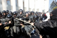 Пока депутаты вели дискуссии в зале под куполом, около Рады сотни активистов из Автомайдана, Финансового Майдана и других общественных объединений установили сцену перед зданием ВР, кричали, шумели, пытались прорваться в парламент и штурмовали кордоны правоохранителей