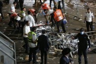 По данным медиков, часть людей могла получить травмы или погибнуть в результате давки, последовавшей за обрушением трибуны.