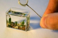 Российский миниатюрист Анатолий Коненко занимается искусством микроминиатюры уже три десятилетия. Он придумал свою собственную технологию письма на рисовых, маковых зернышках, а также человеческих волосах, а недавно создал самый маленький в мире аквариум с живыми рыбками.
